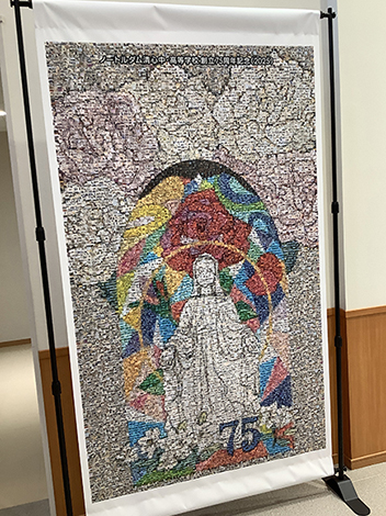 このフォトモザイクアートタペストリーは、生徒会の発案で始まって実現した、全校生徒の思いを後世に伝える大きなプロジェクトでした。